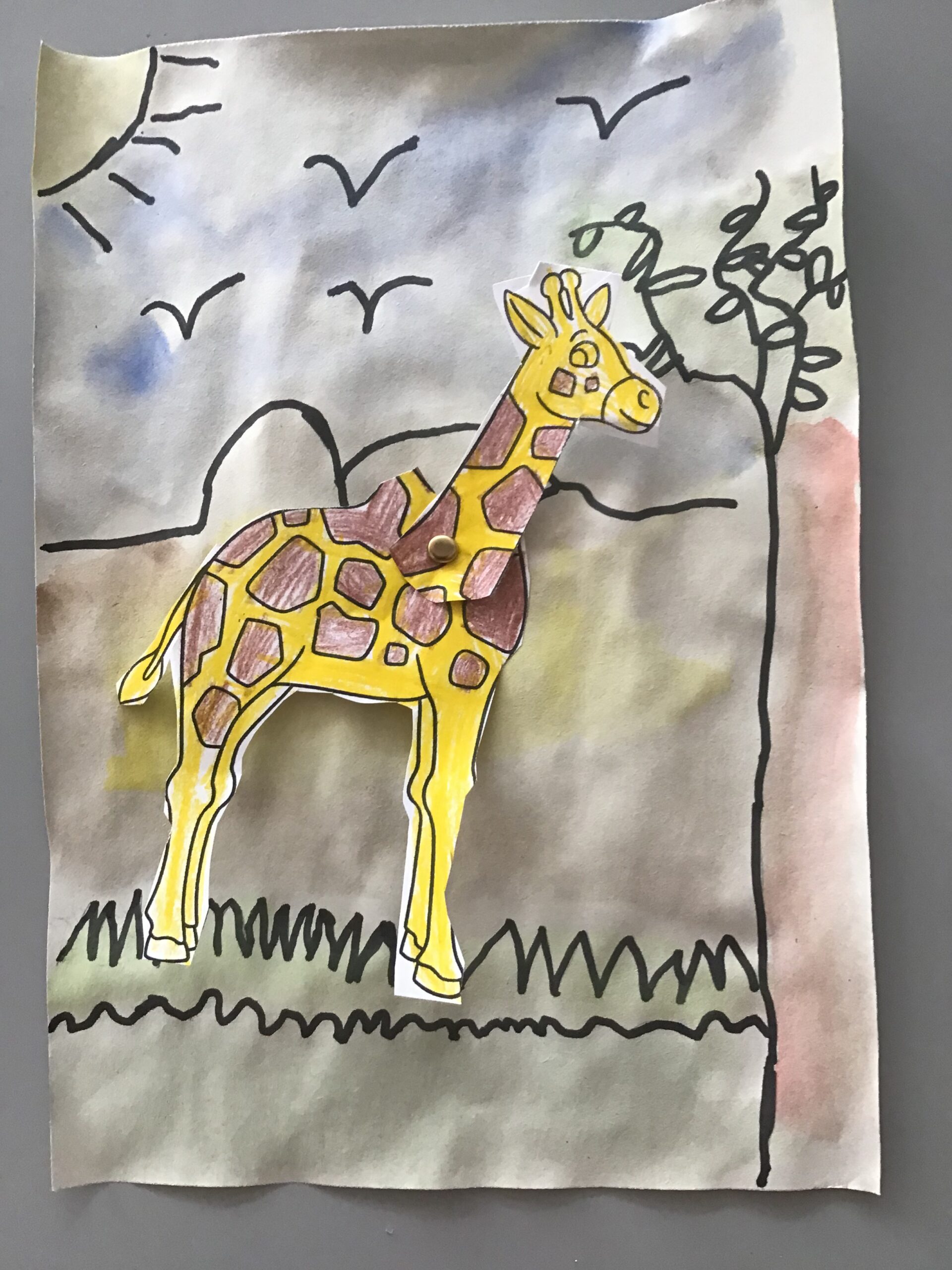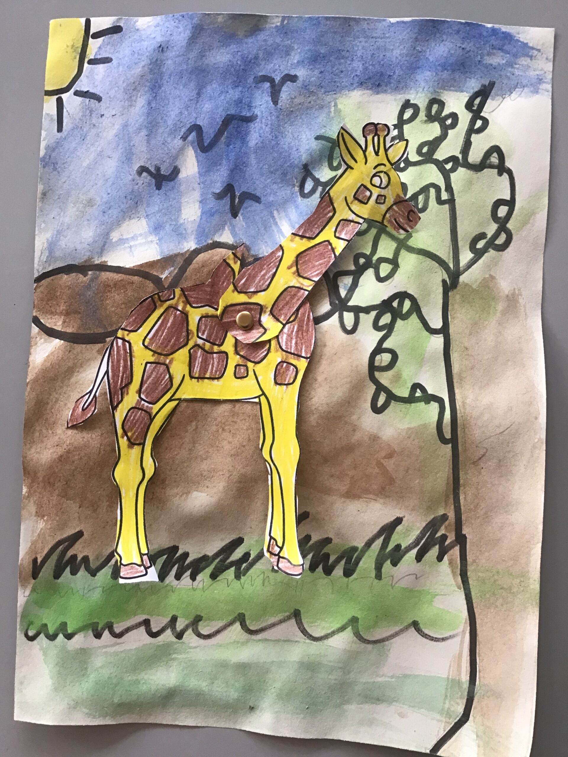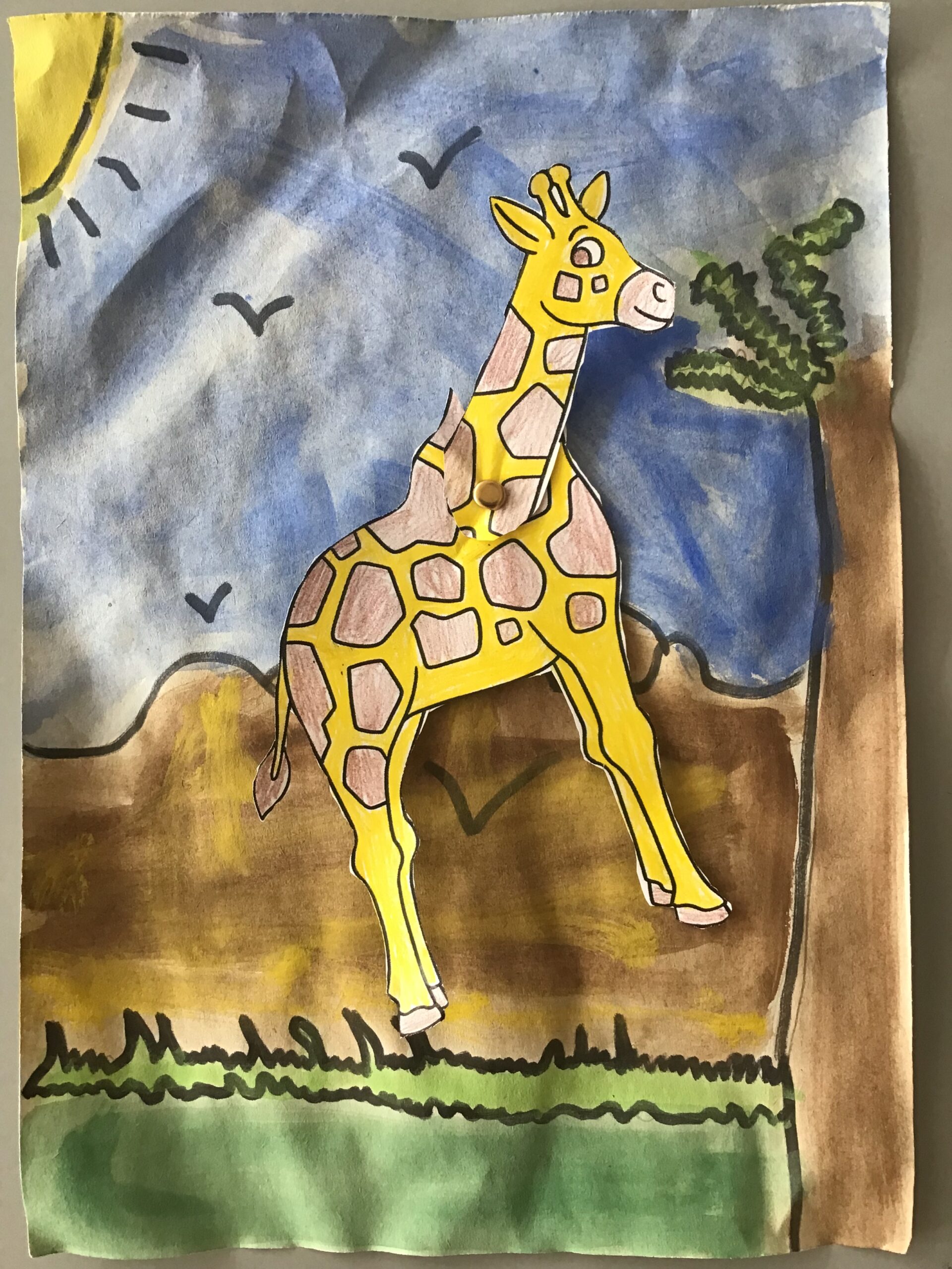 Nathan and Nyra worked excellently in DT when we created a moving lever mechanism using a split pin.We painted a vibrant background using watercolours and designed a lever so it looked like a giraffe was munching leaves from a tall tree.Â
