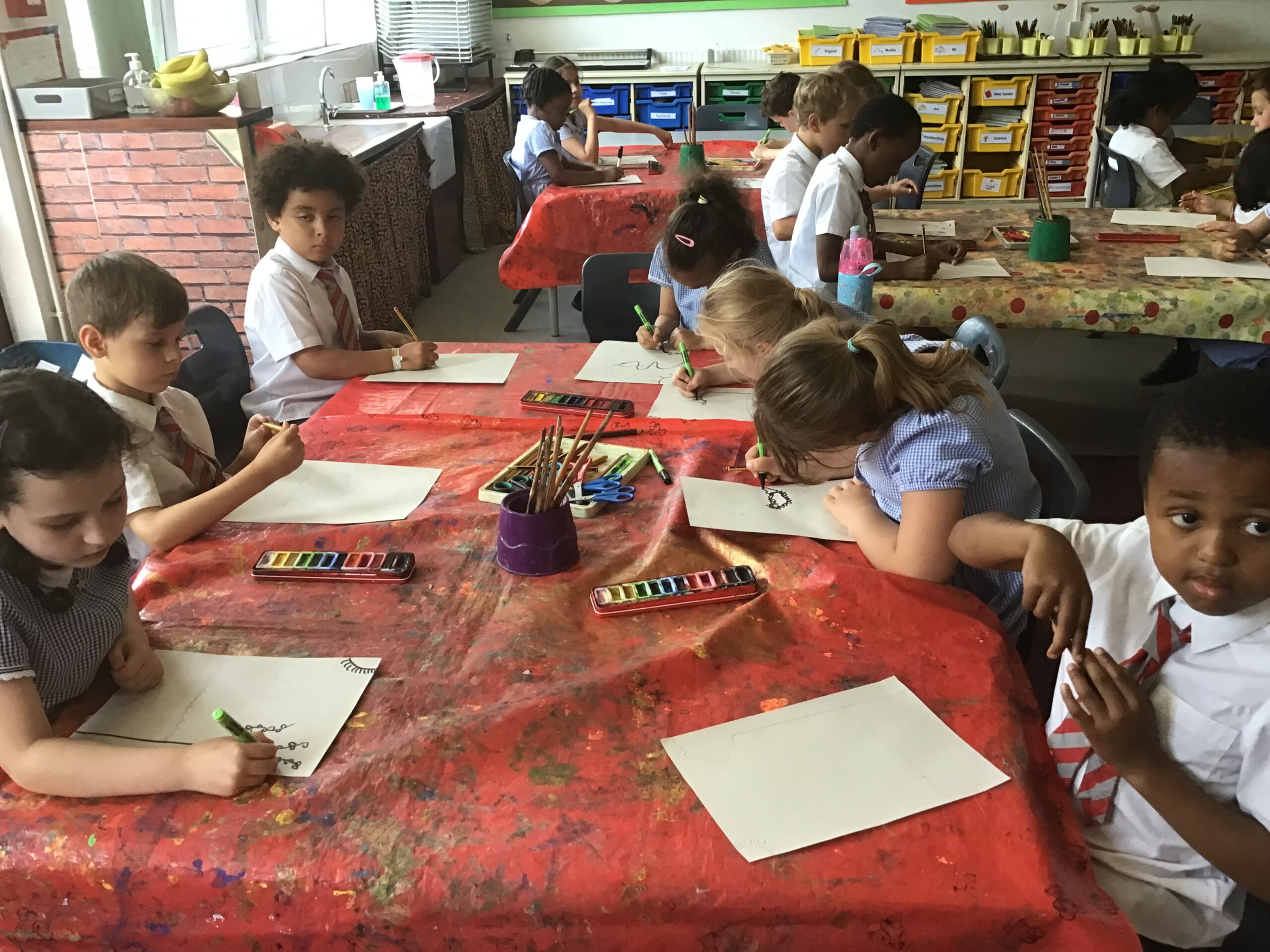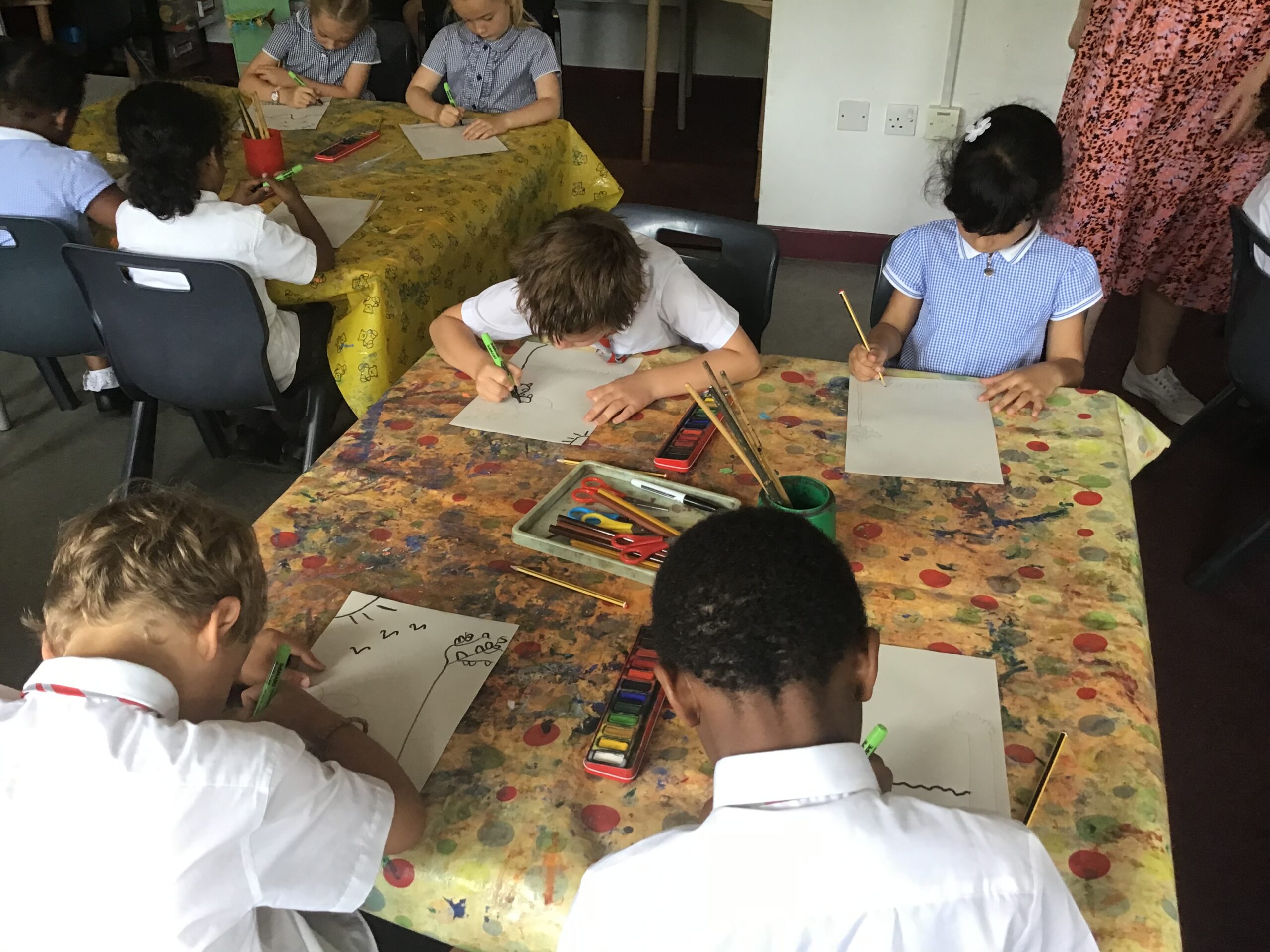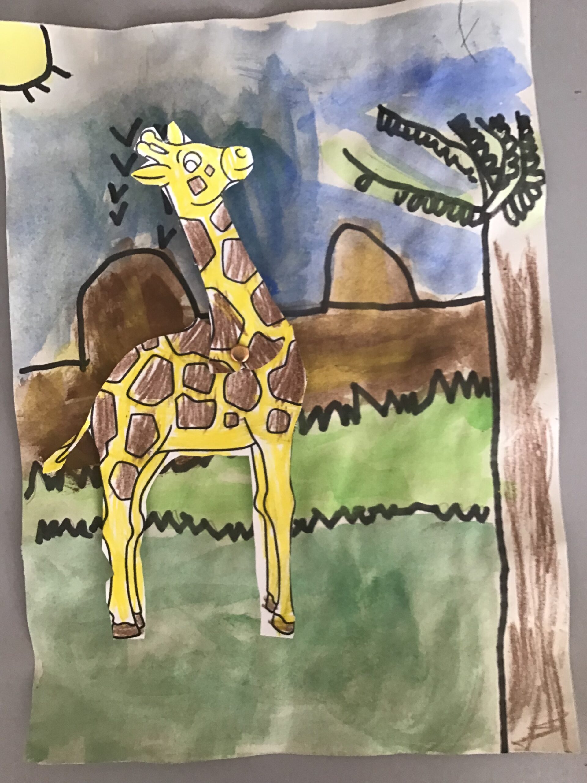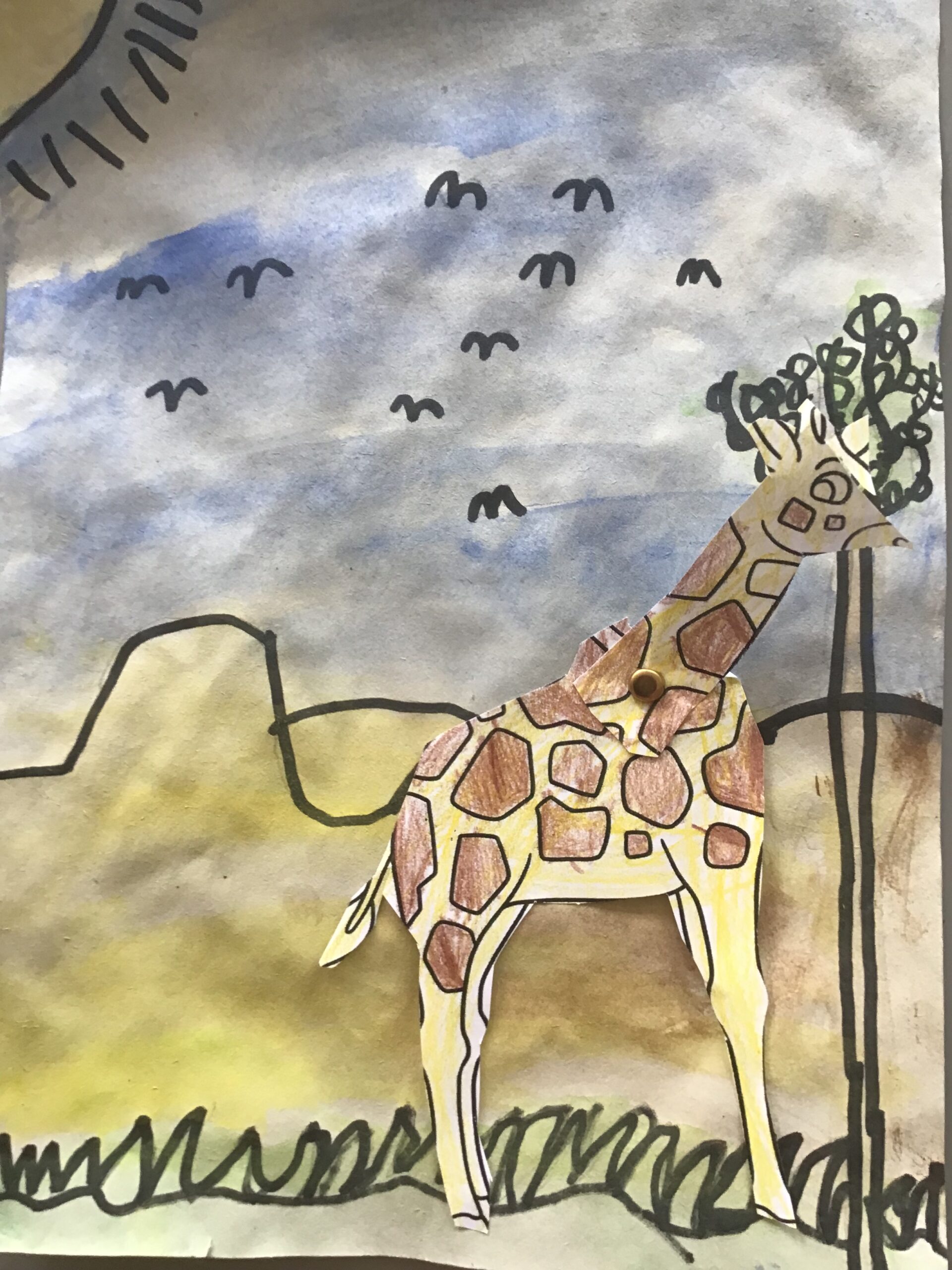 Nathan and Nyra worked excellently in DT when we created a moving lever mechanism using a split pin.We painted a vibrant background using watercolours and designed a lever so it looked like a giraffe was munching leaves from a tall tree.Â