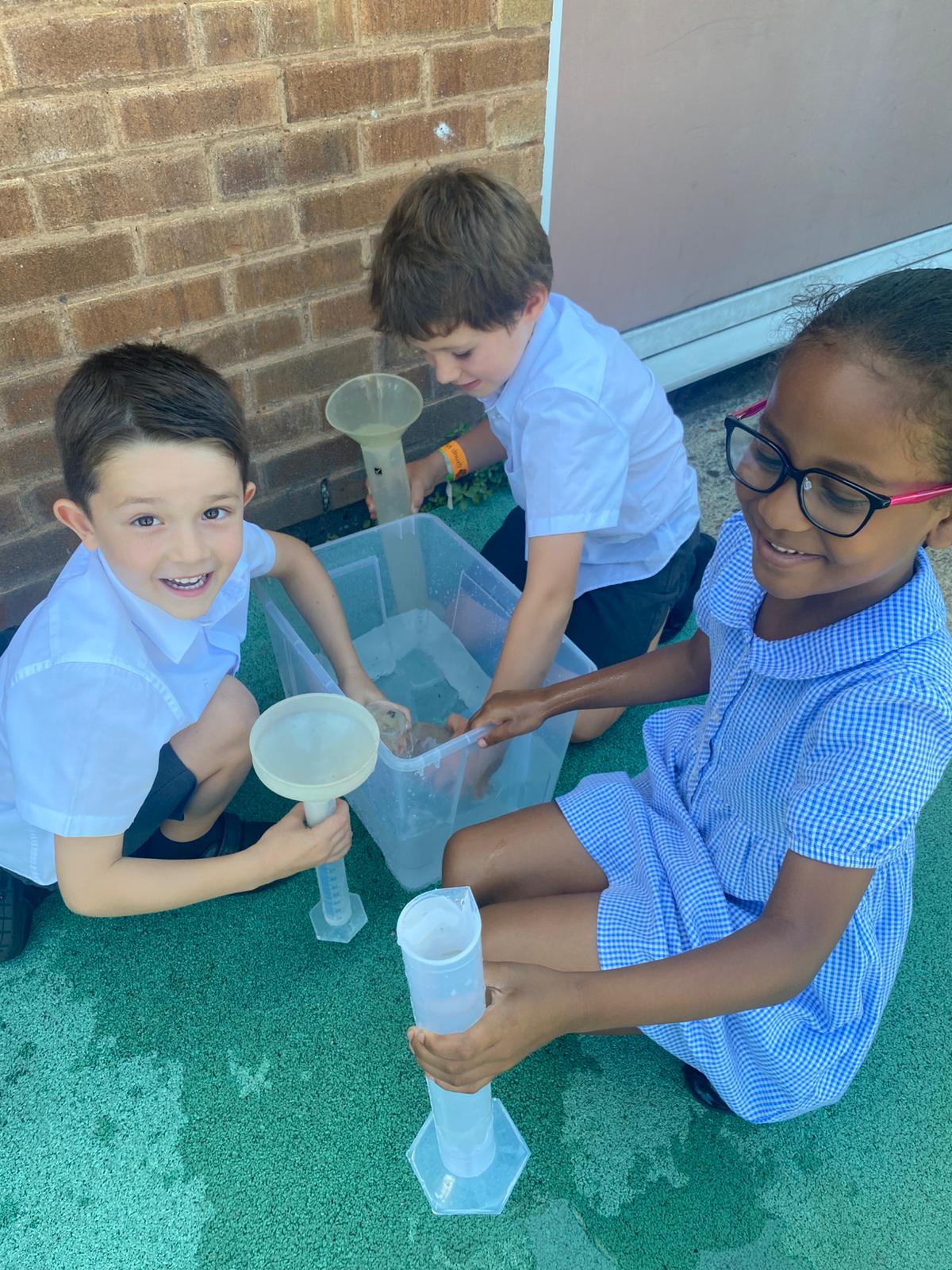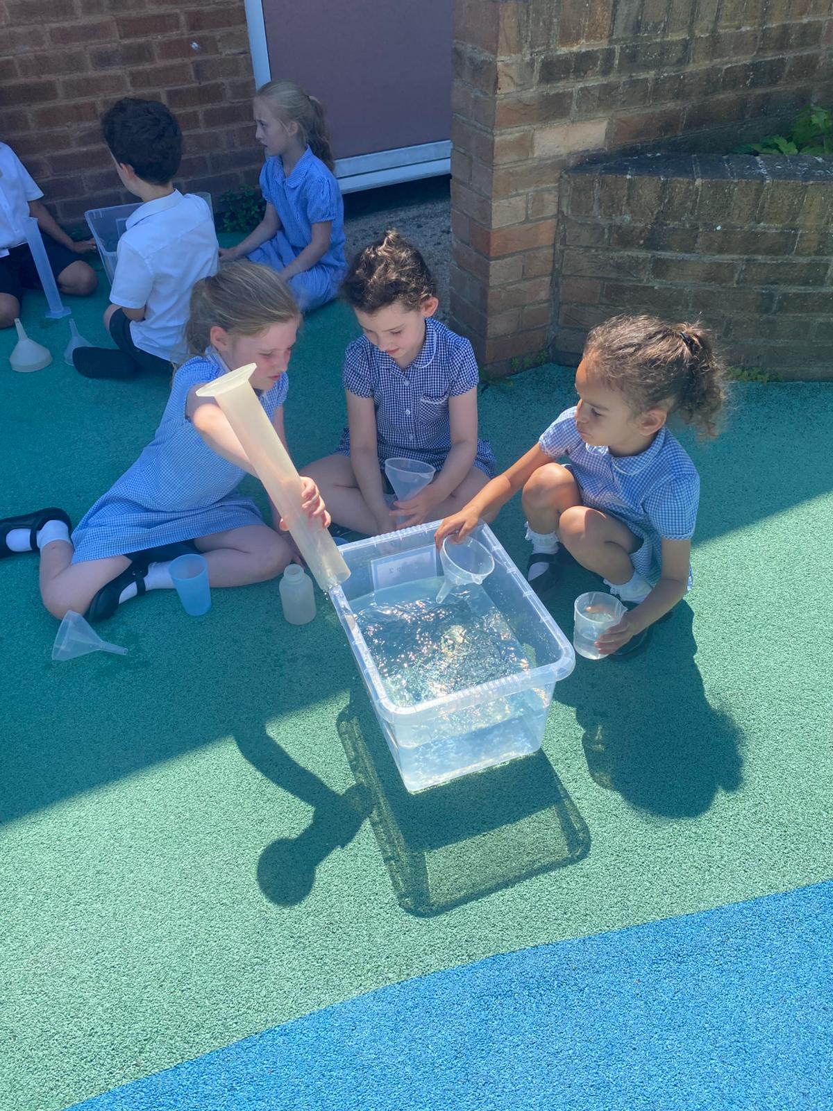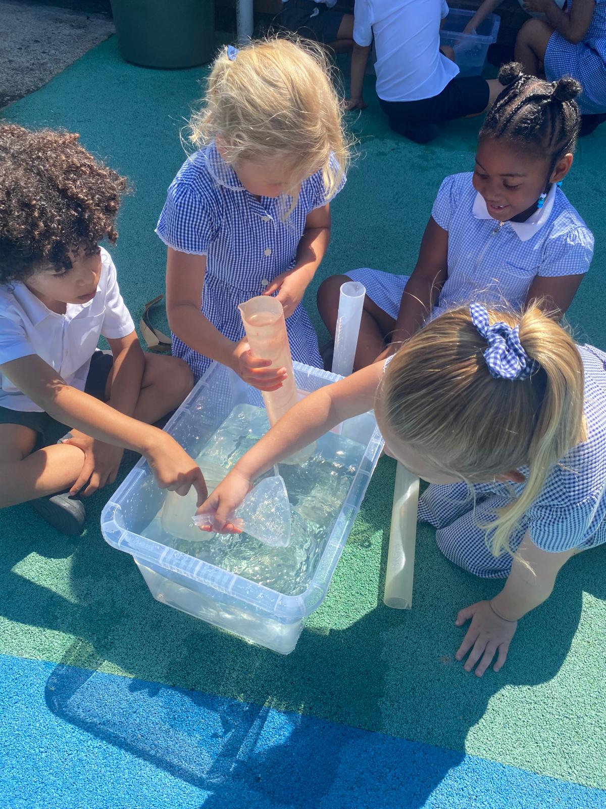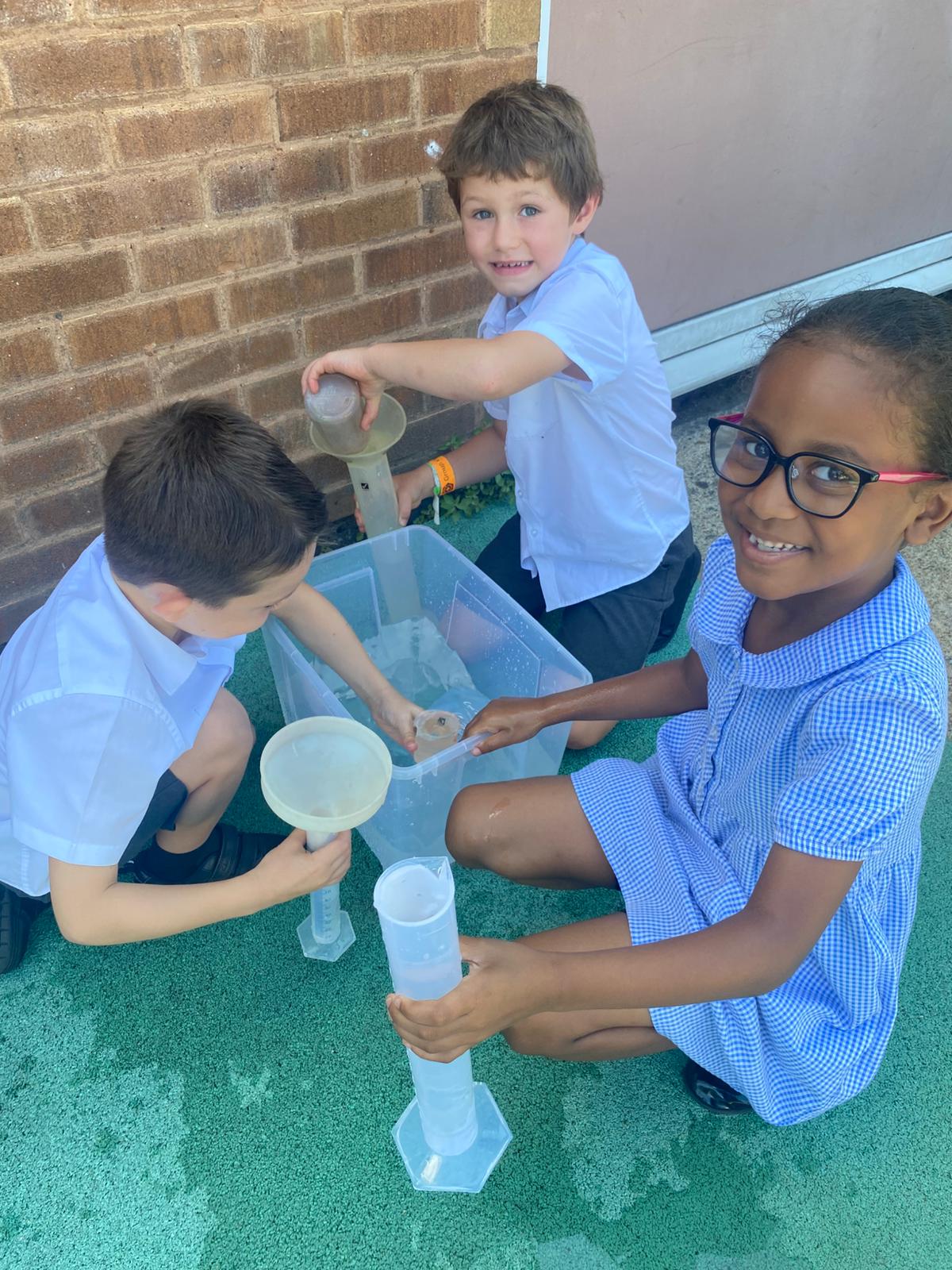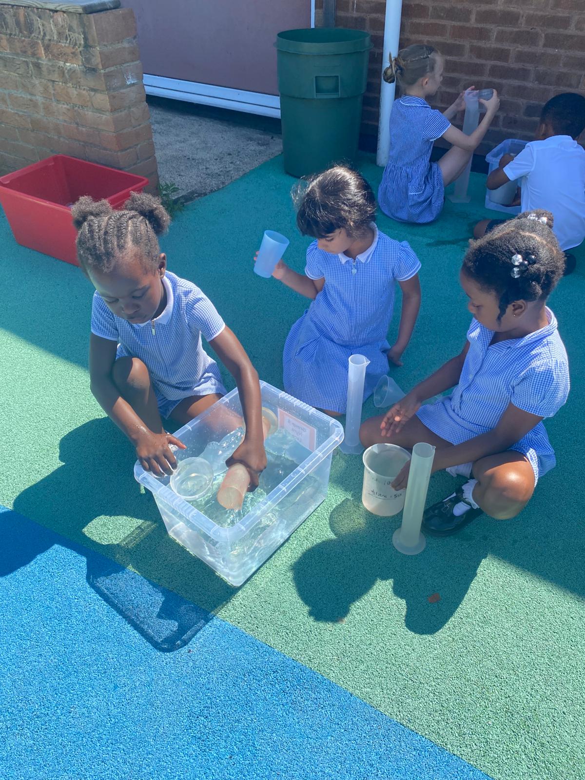 With the sun shining, we headed outside armed with jugs, cups, tubs, and buckets. It was the perfect way to cool off while putting our learning into action — and we’re fairly sure the playground is now a little cleaner, too!