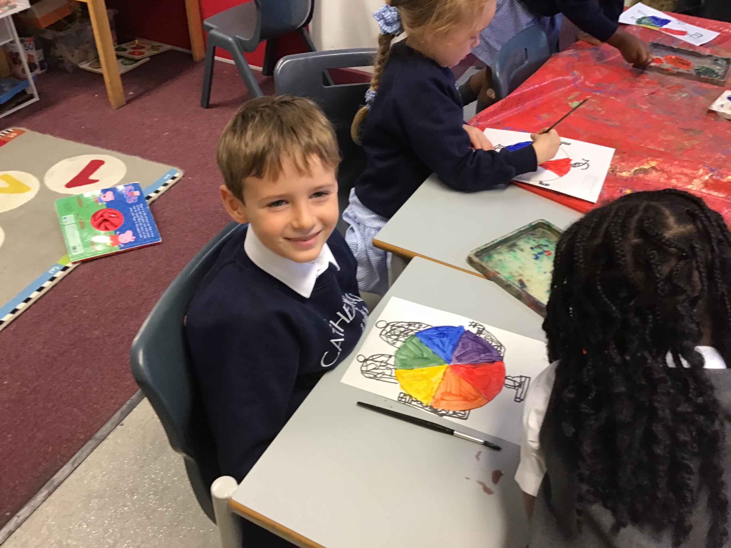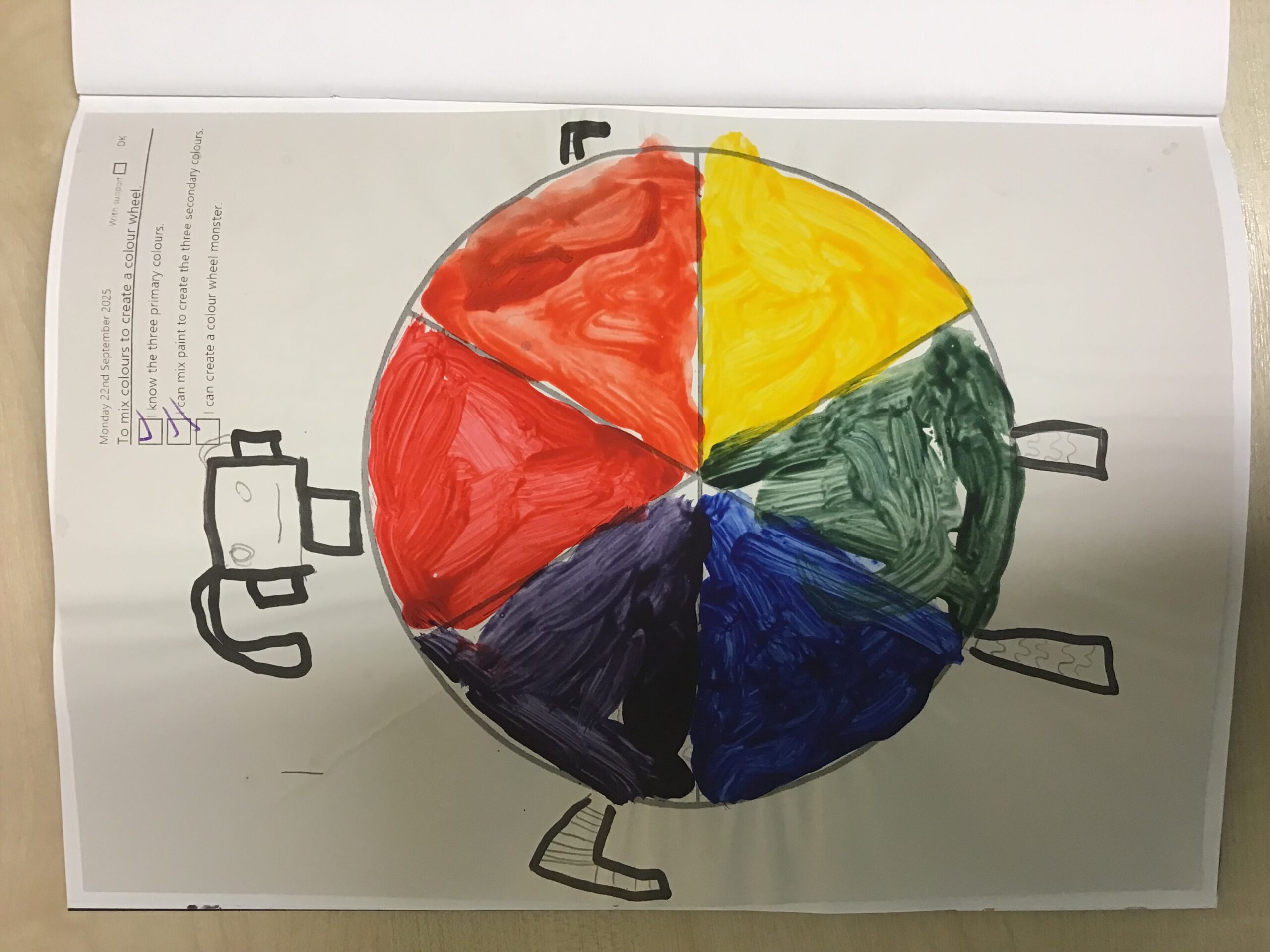 Well done Ralphie and Acacia for showing creativity and effort in art. They made fantastic colour wheel monsters by mixing primary colours to create exciting secondary colours!