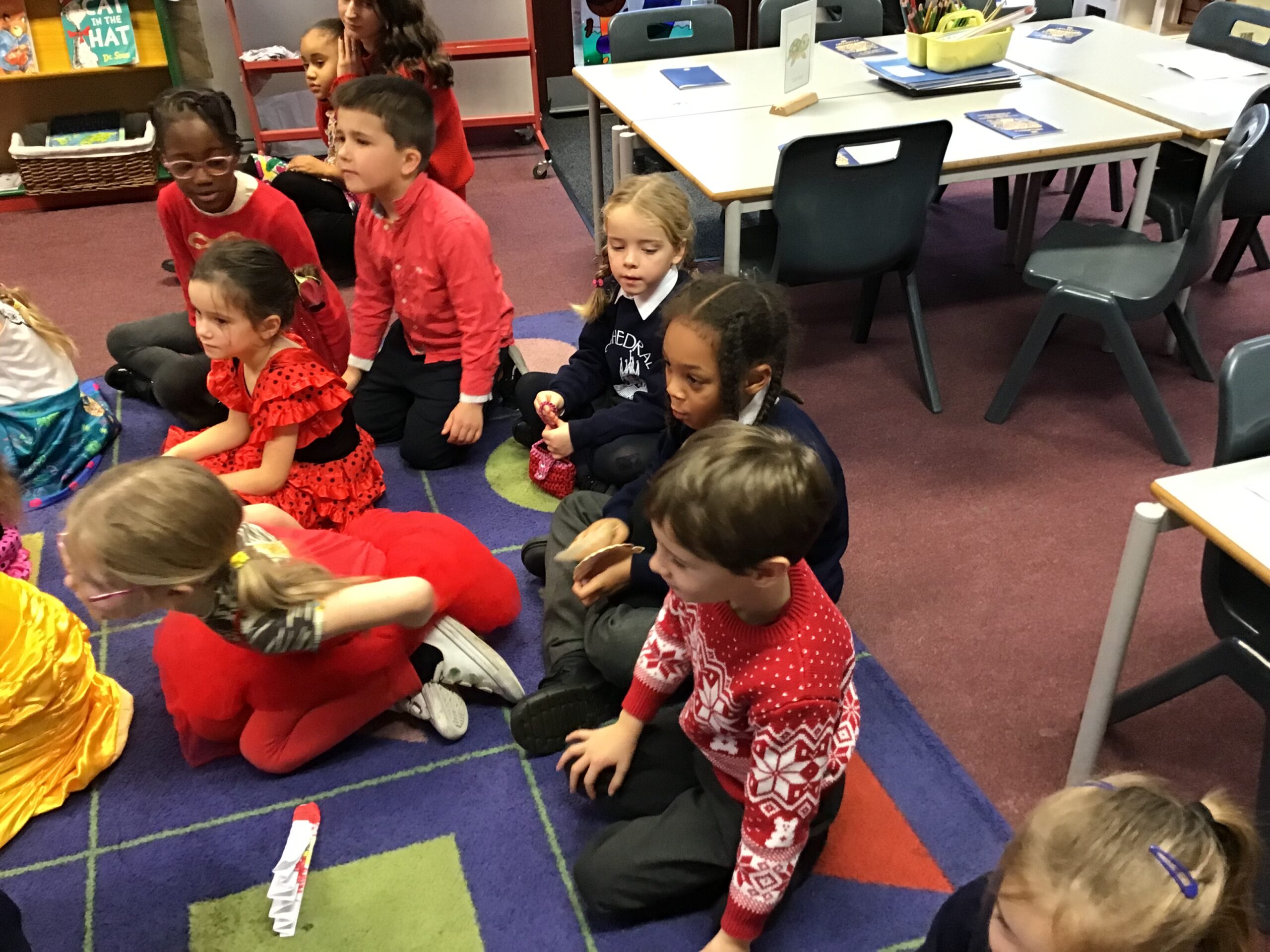 Alongside our research, we also spent time practising Spanish conversational phrases. The children confidently greeted each other with ‘hola’ and asked ‘¿cómo estás?’ as they moved around the room. It was wonderful to see how quickly they picked up the language and how keen they were to use it throughout the day. Lots of children practised saying ‘gracias’ for their special Spanish day lunch too.Â
