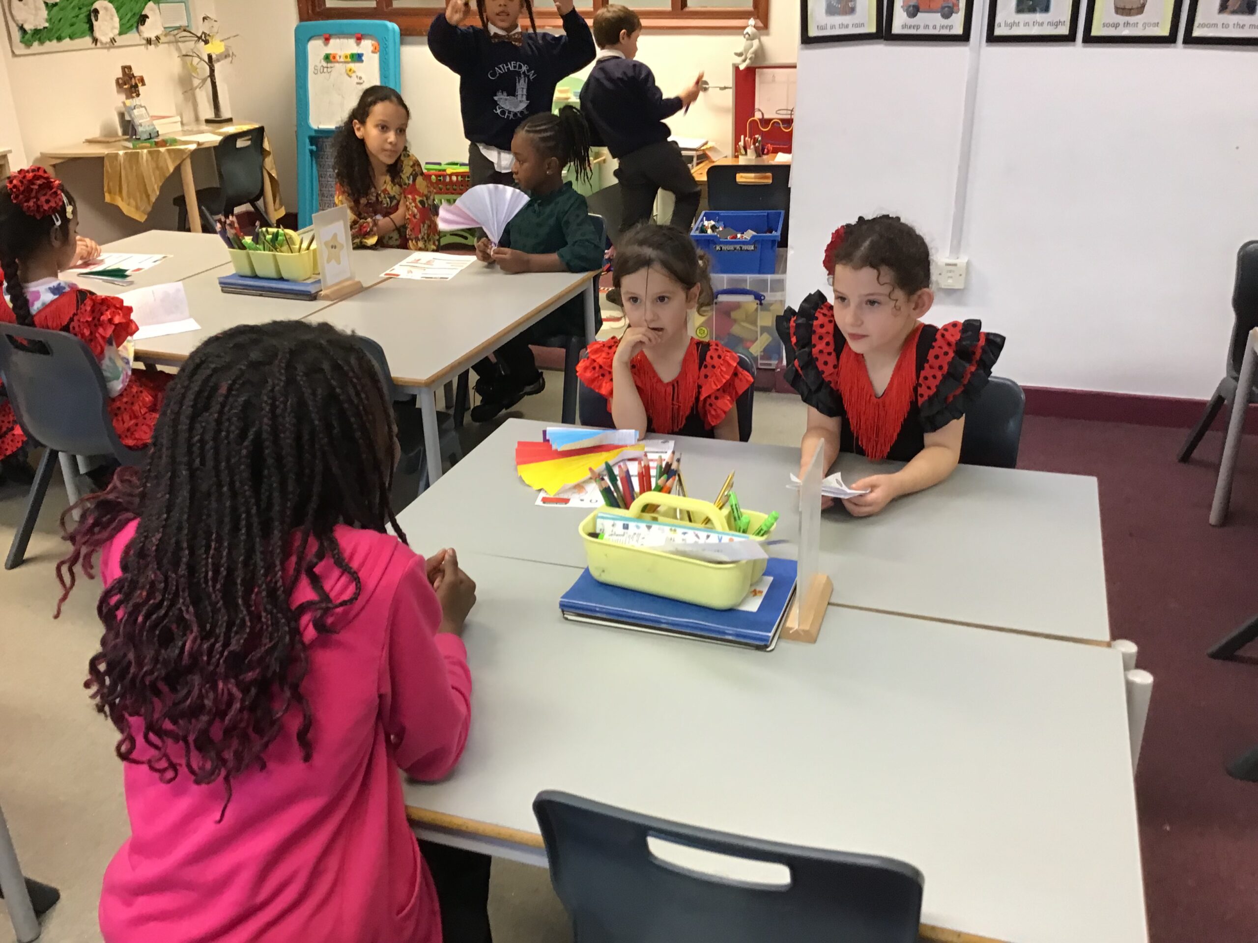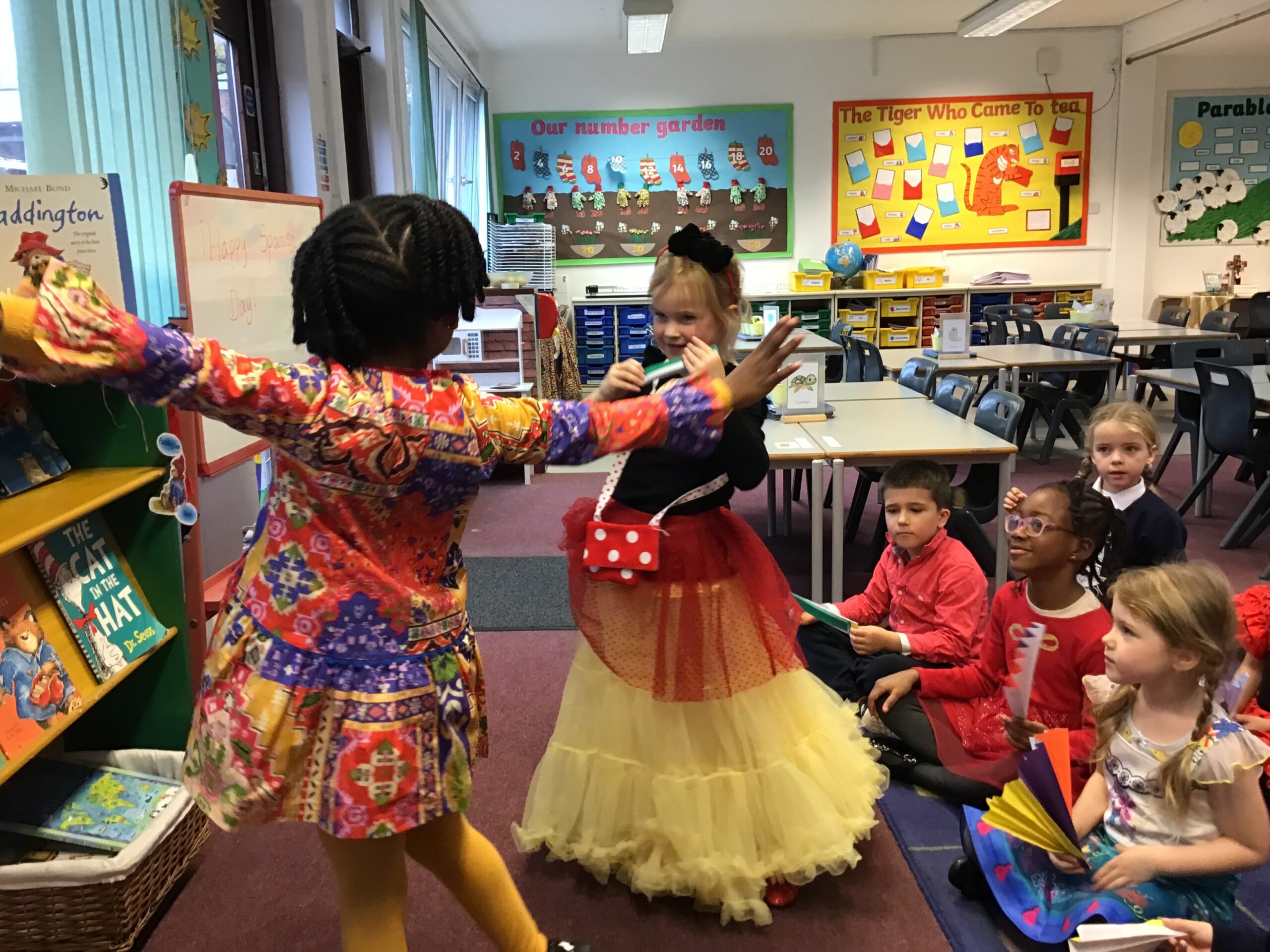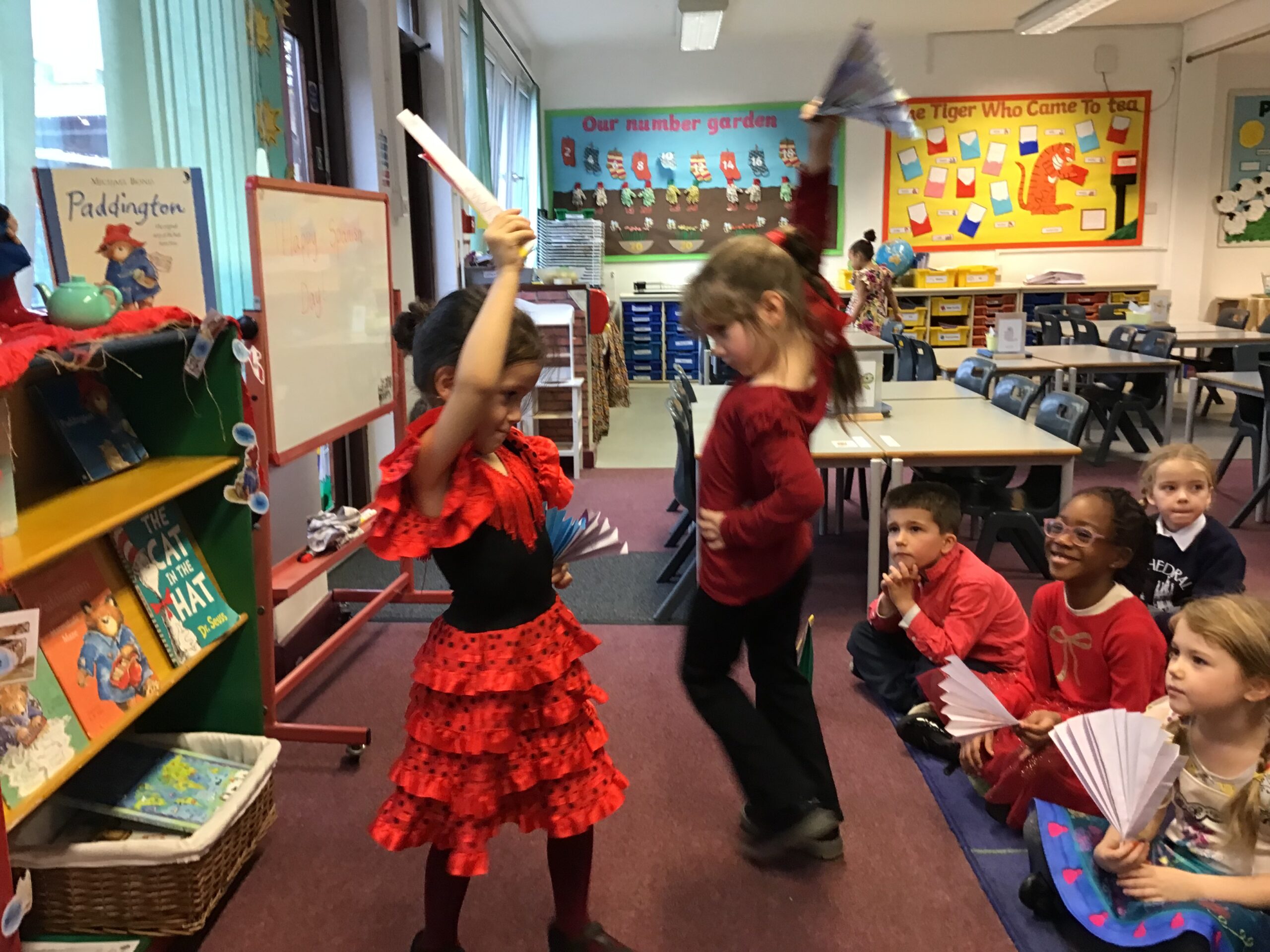 Our crafty side also came to life as we made traditional-style Spanish fans. The children decorated them before using them as props in their very own flamenco dance performances. Have a look at photos from Spanish day below.Â