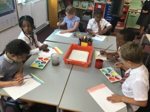 In Art, we began by looking at the Primary Colours and explored what colours we could make when we mixed them together. We then used the new colours that we had made to produce a colourful background which we will continue to work on next week.