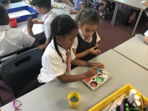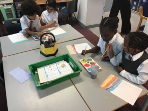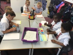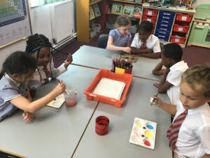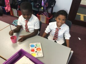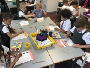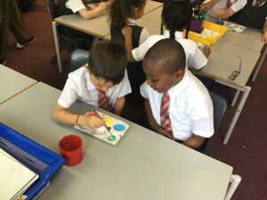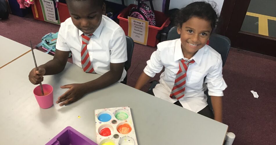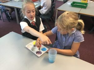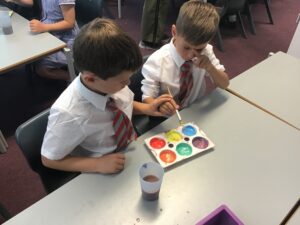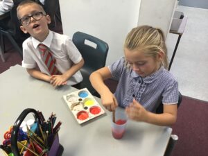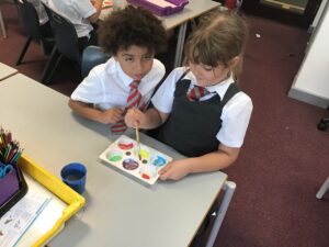In Art, we began by looking at the Primary Colours and explored what colours we could make when we mixed them together. We then used the new colours that we had made to produce a colourful background which we will continue to work on next week.