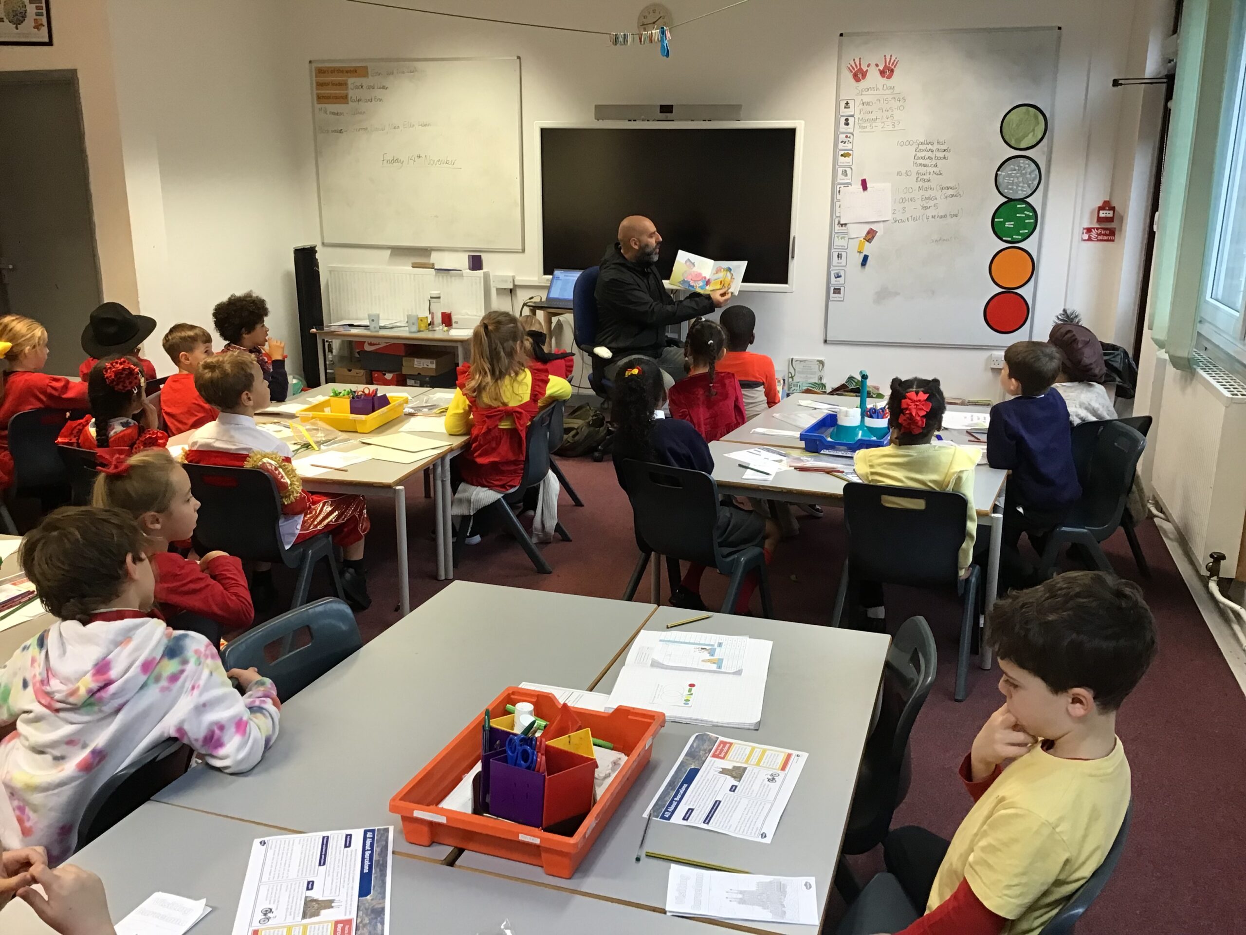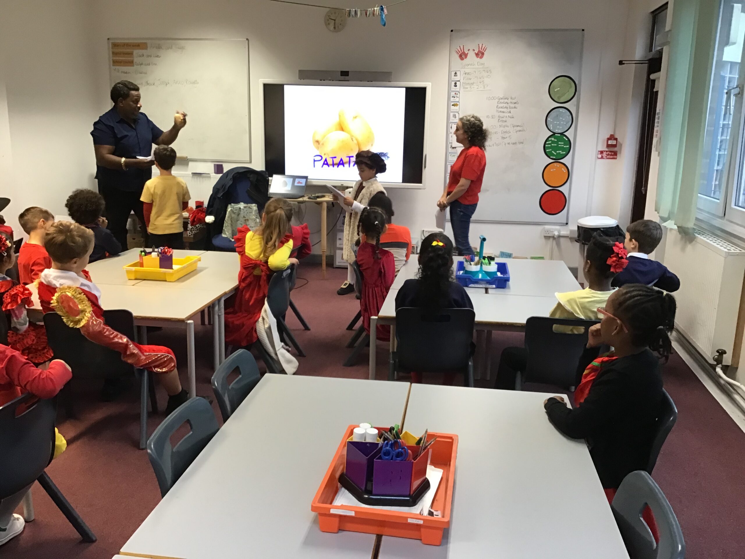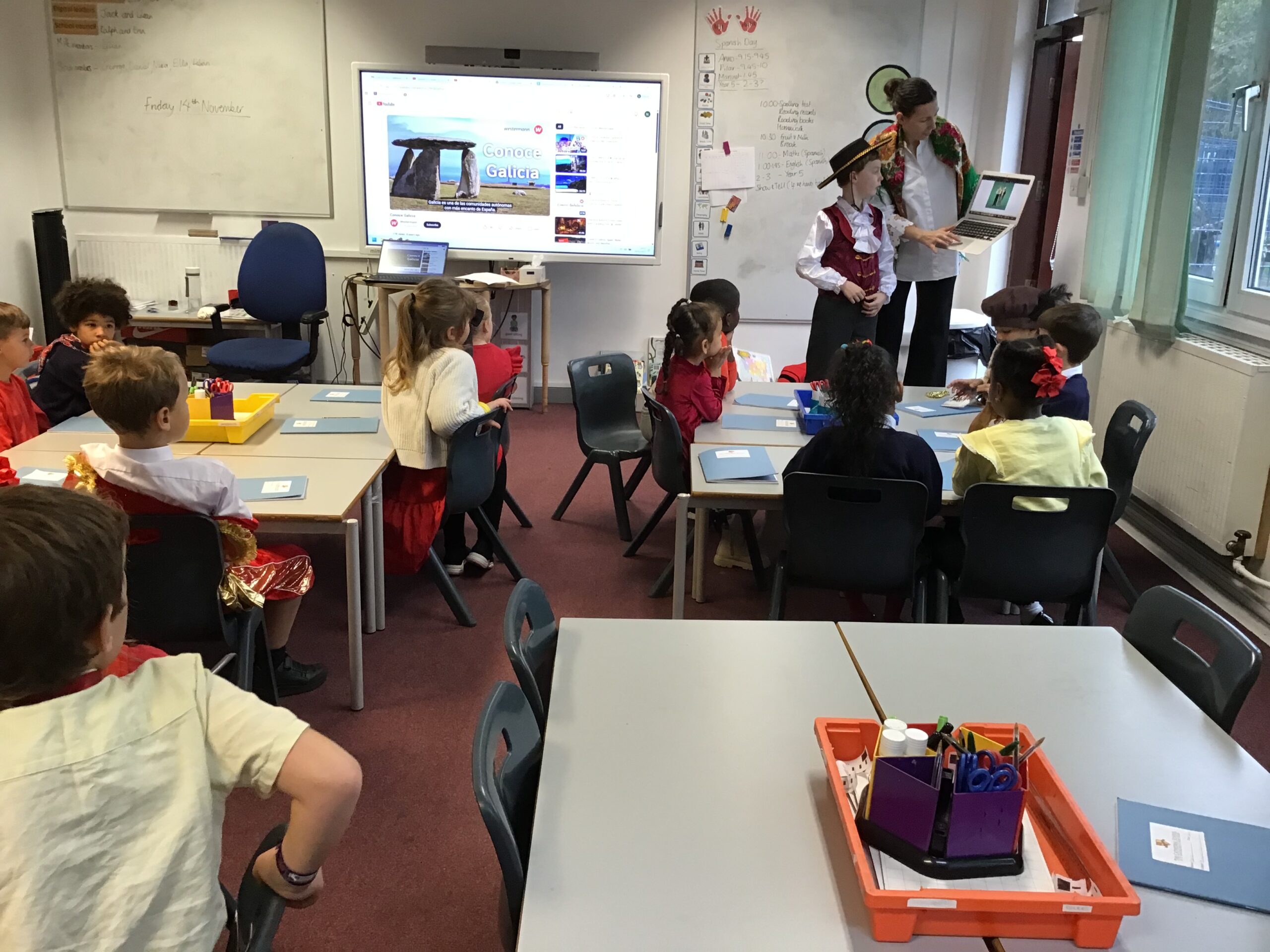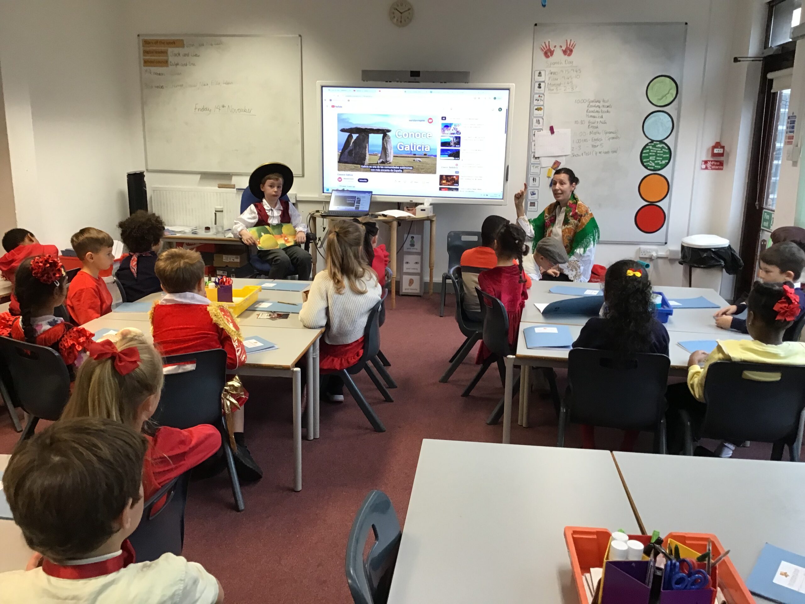 Year 2 had a fantastic time celebrating Spanish day last Friday! We started off the day by learning about Christopher Columbus and Amerigo Vespucci. Thank you to Patrica, Ubaldo and Anxo for the exciting reenactment! We then had a visit from Pilar where she showed us some traditional Spanish clothing and let us play with her musical instruments. We also did our Maths and English in Spanish just before having a tasty Spanish feast! In the afternoon we shared our learning with Year 1 and Year 5. What a fun Spanish day – we are already looking forward to next year!