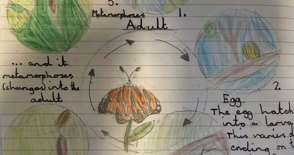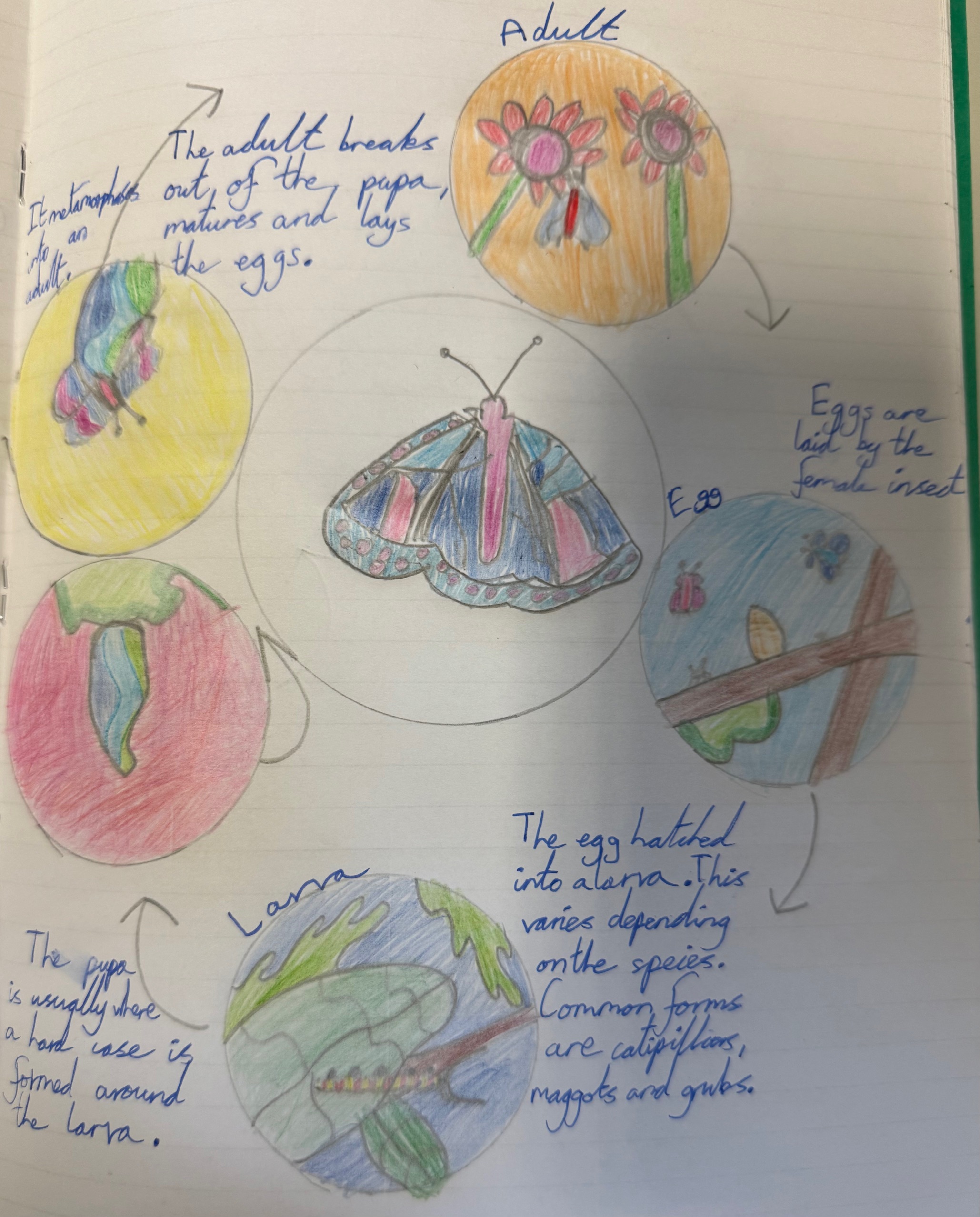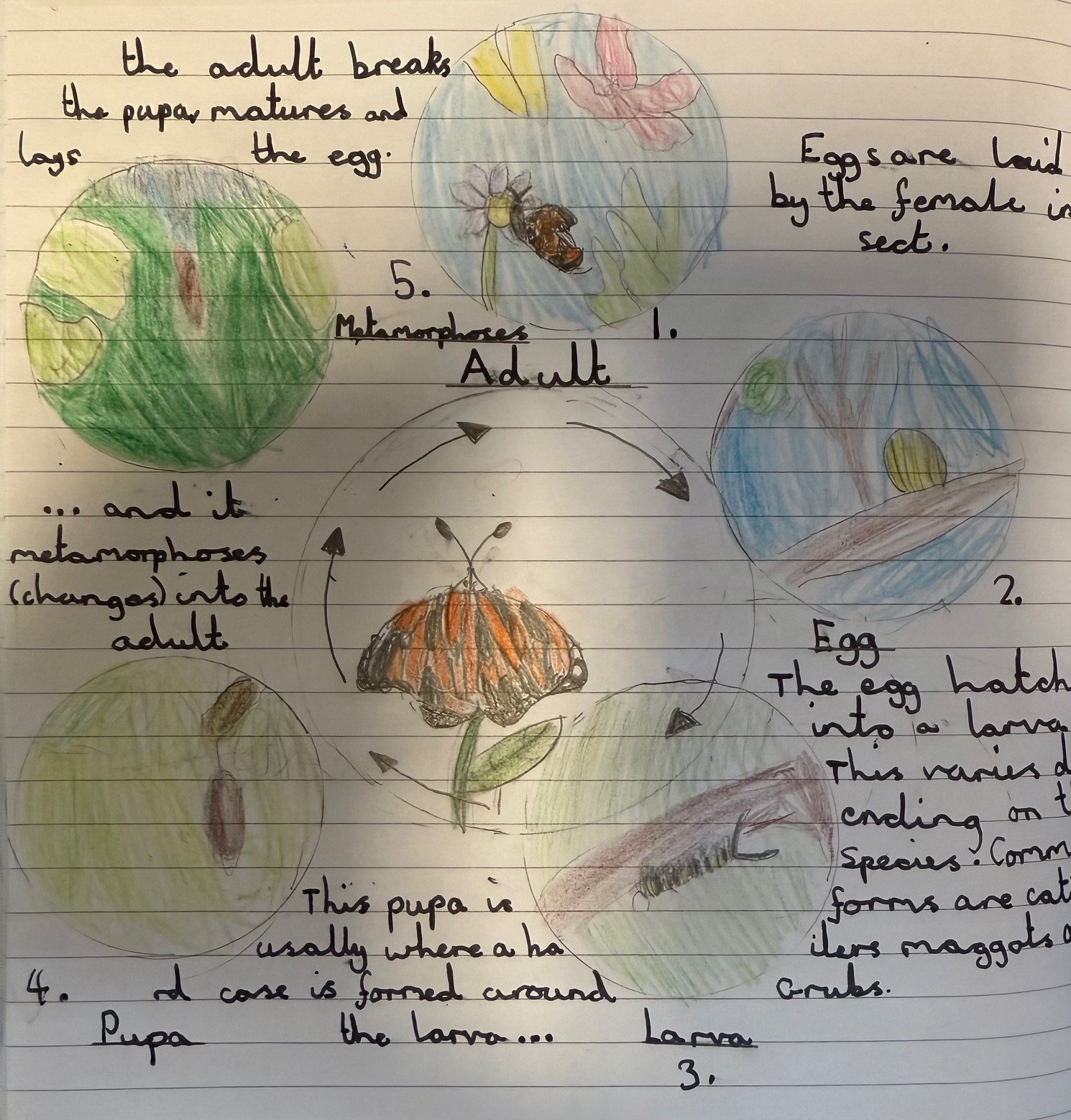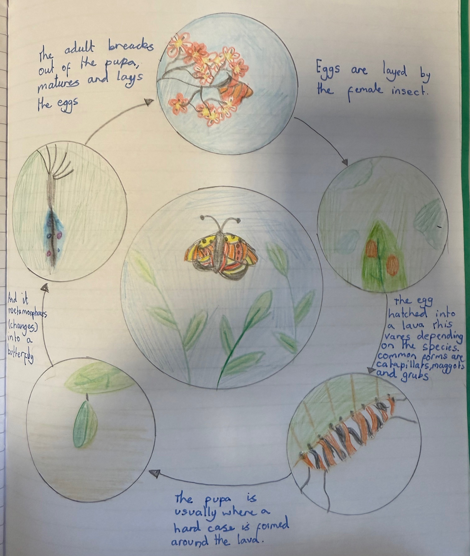 This week, we have started our new science topic and have been learning about the lifecycle of a butterfly. We looked at the different life stages of a butterfly and discussed what happened at each stage. We then created our own lifecycles, showing the different stages of a butterfly as it grows from an egg into a caterpillar before going through metamorphosis to become a butterfly.
