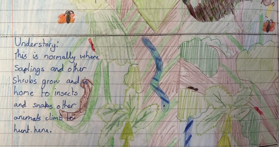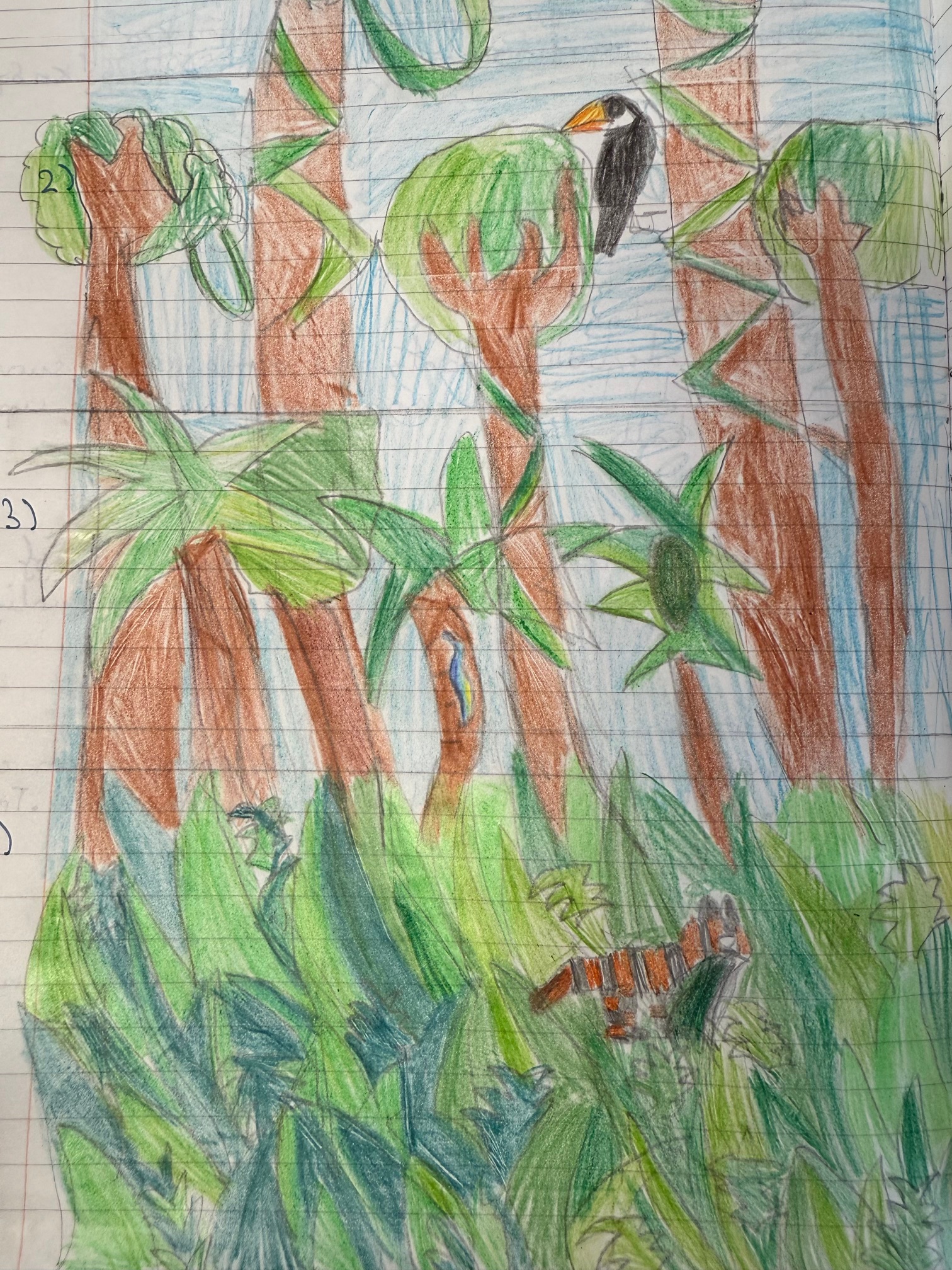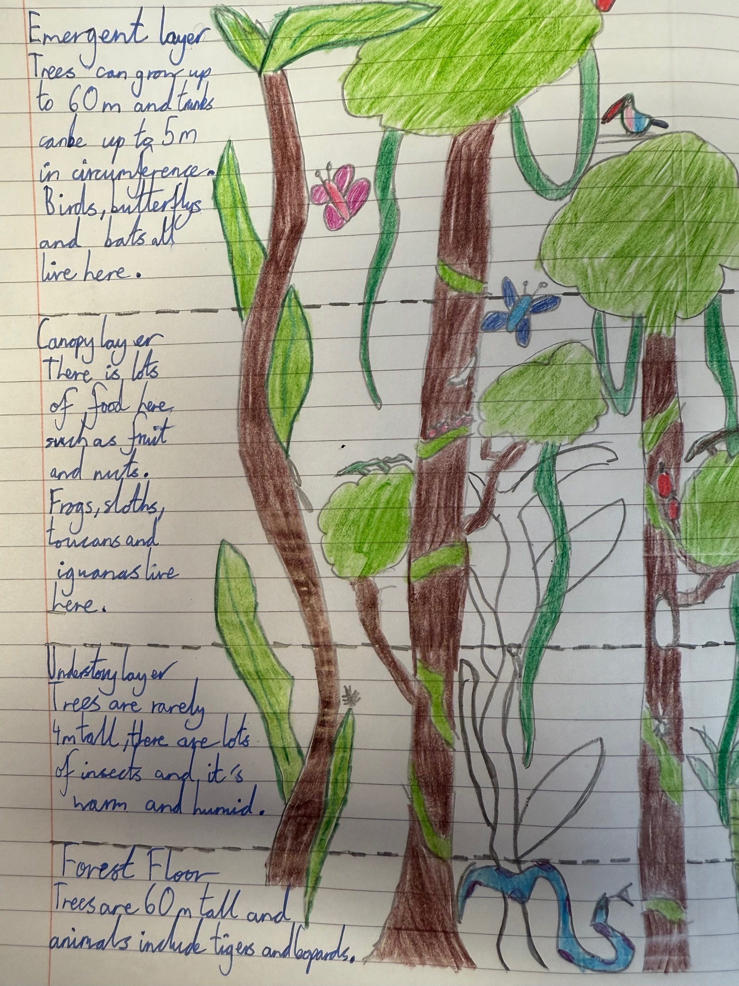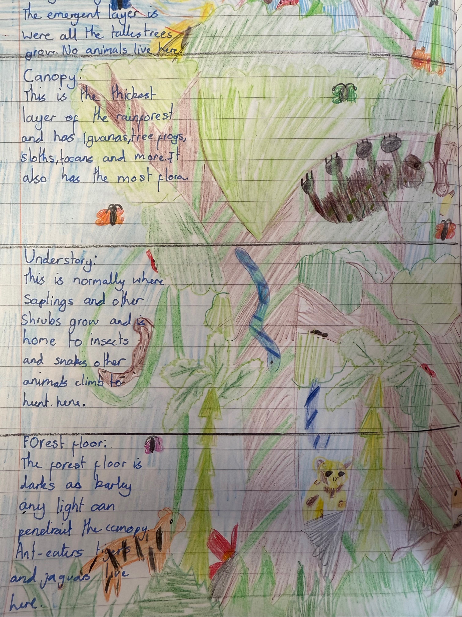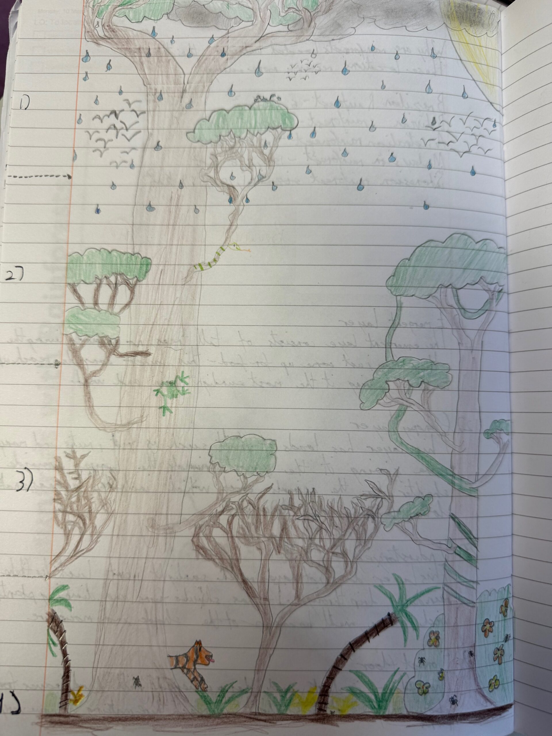 This week, we have been learning about the different layers of the rainforest: the emergent layer, the canopy, the understory and the forest floor. We learnt about how each layer is different and some examples of different animals living in each layer.