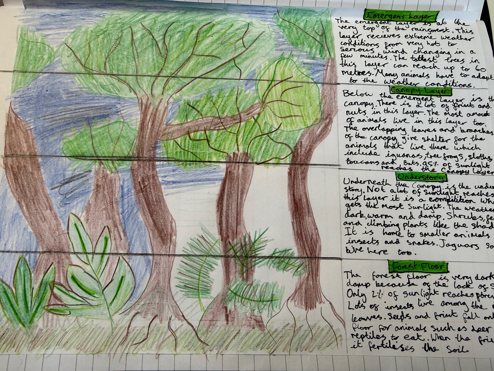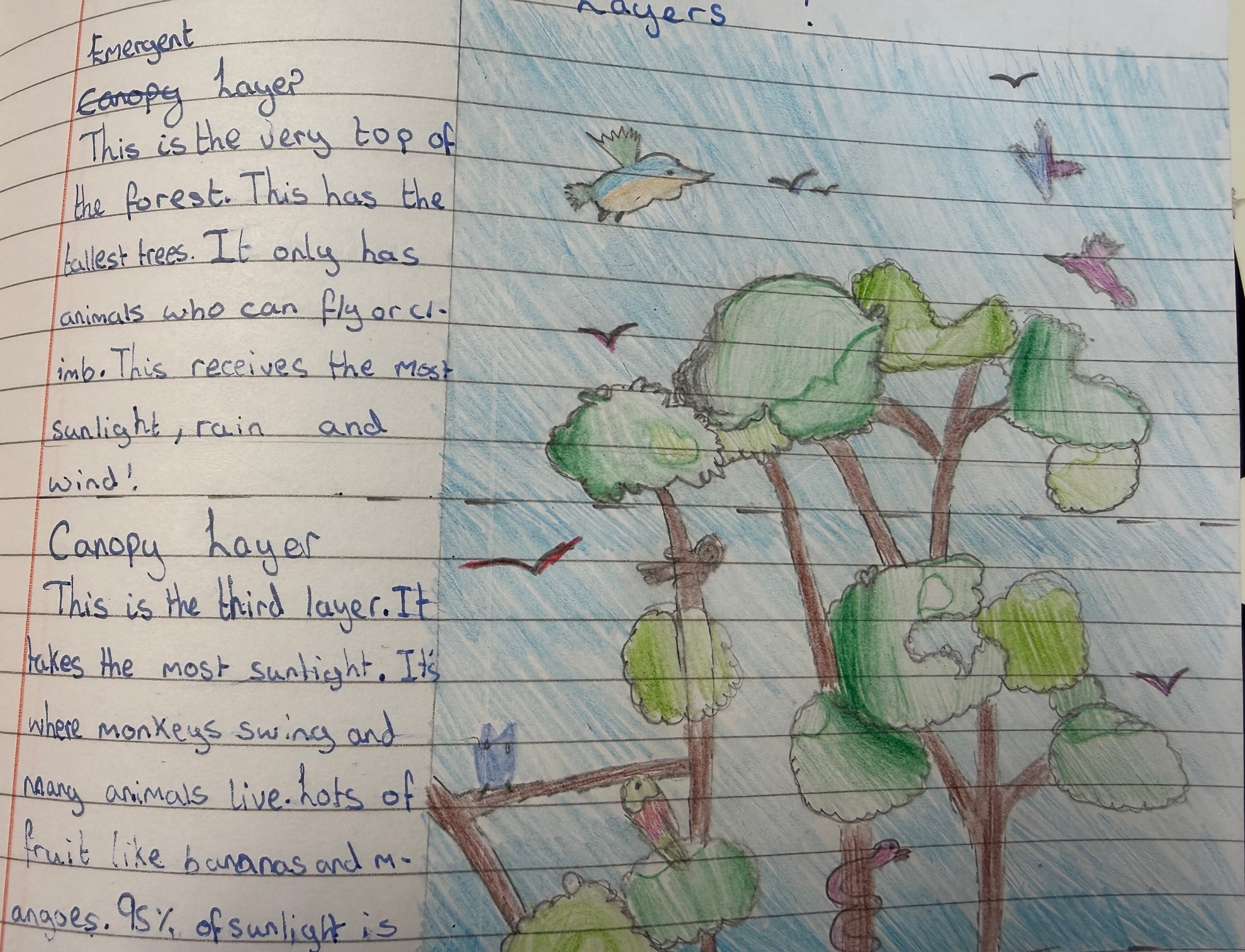 This week, we have been busy learning all about the different layers of the rainforest. We researched the features of each layer before creating our own information text, complete with a diagram showing the structure of a rainforest.