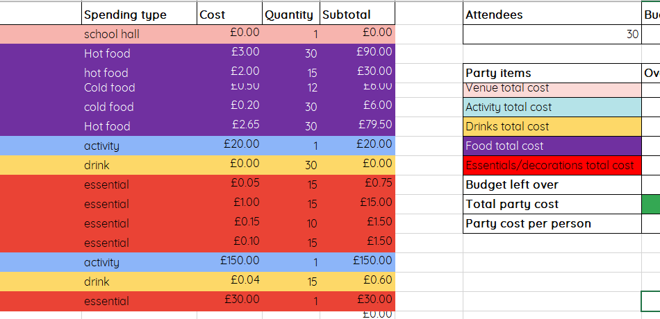 In Computing this week, Class 6 have been organising some parties! They were given a specific budget and had to calculate the totals of each item using simple calculations. Using the 4 different operations and colour coding each item, it was interesting to see how different each decision was between the partners!