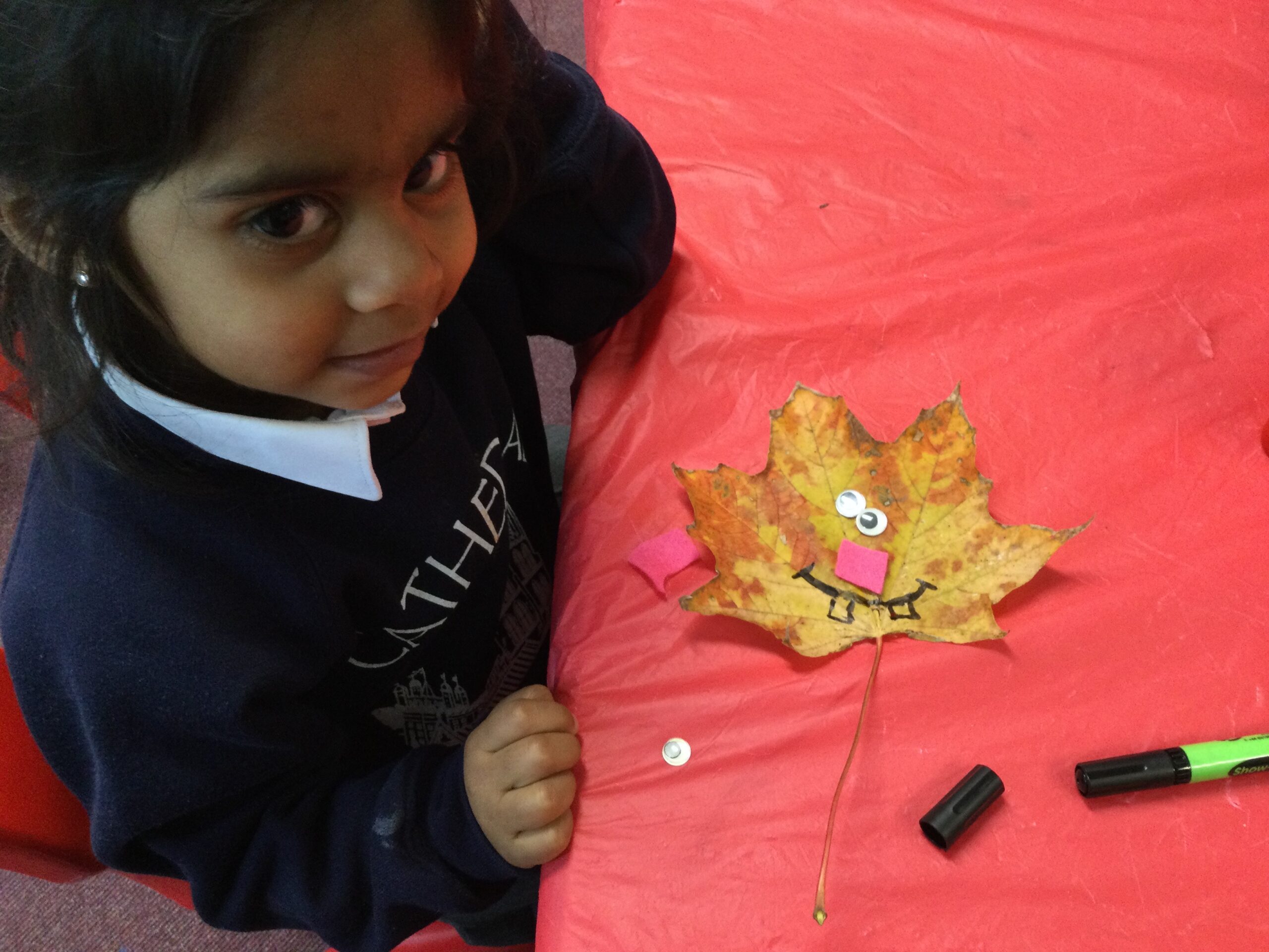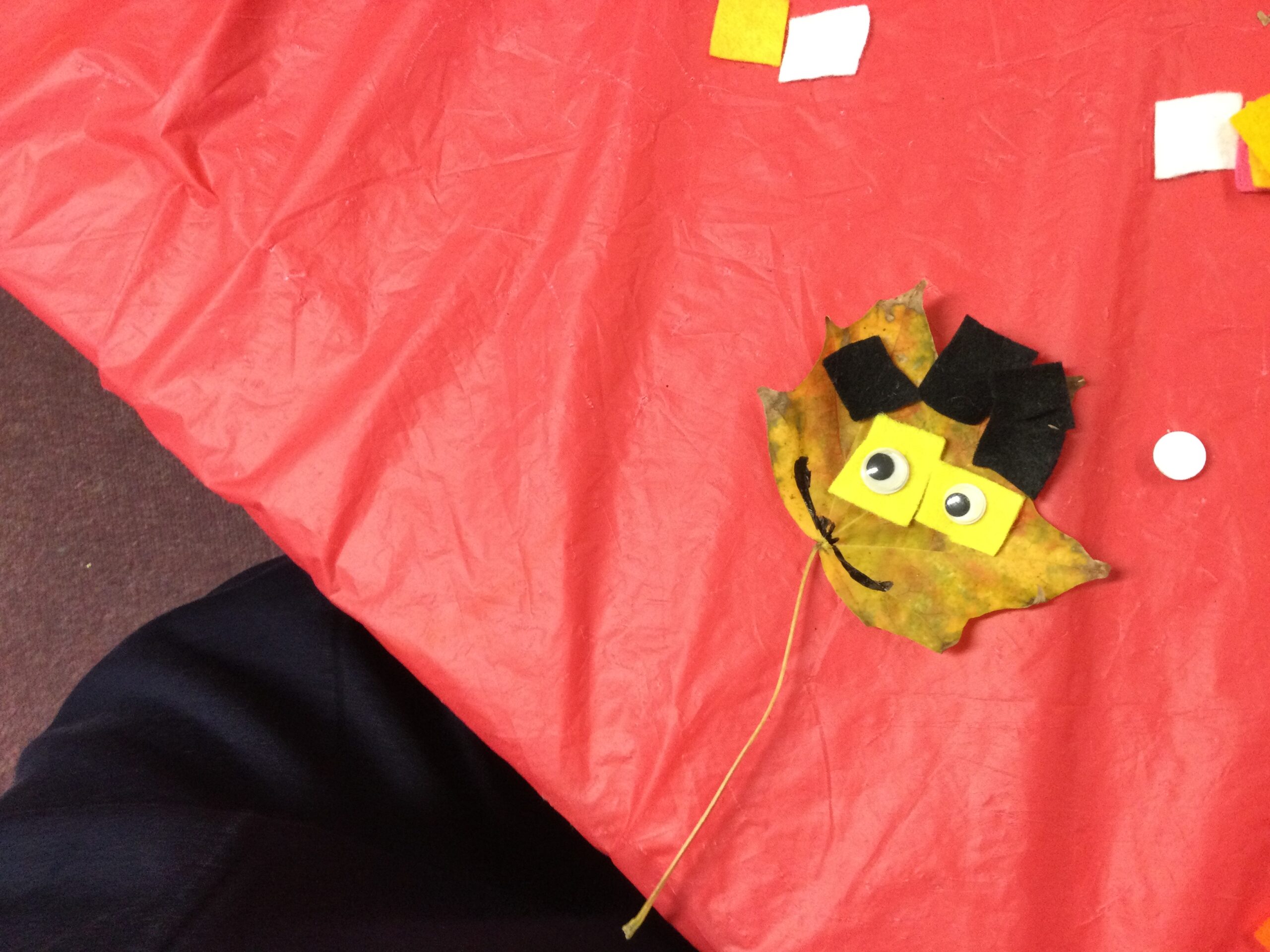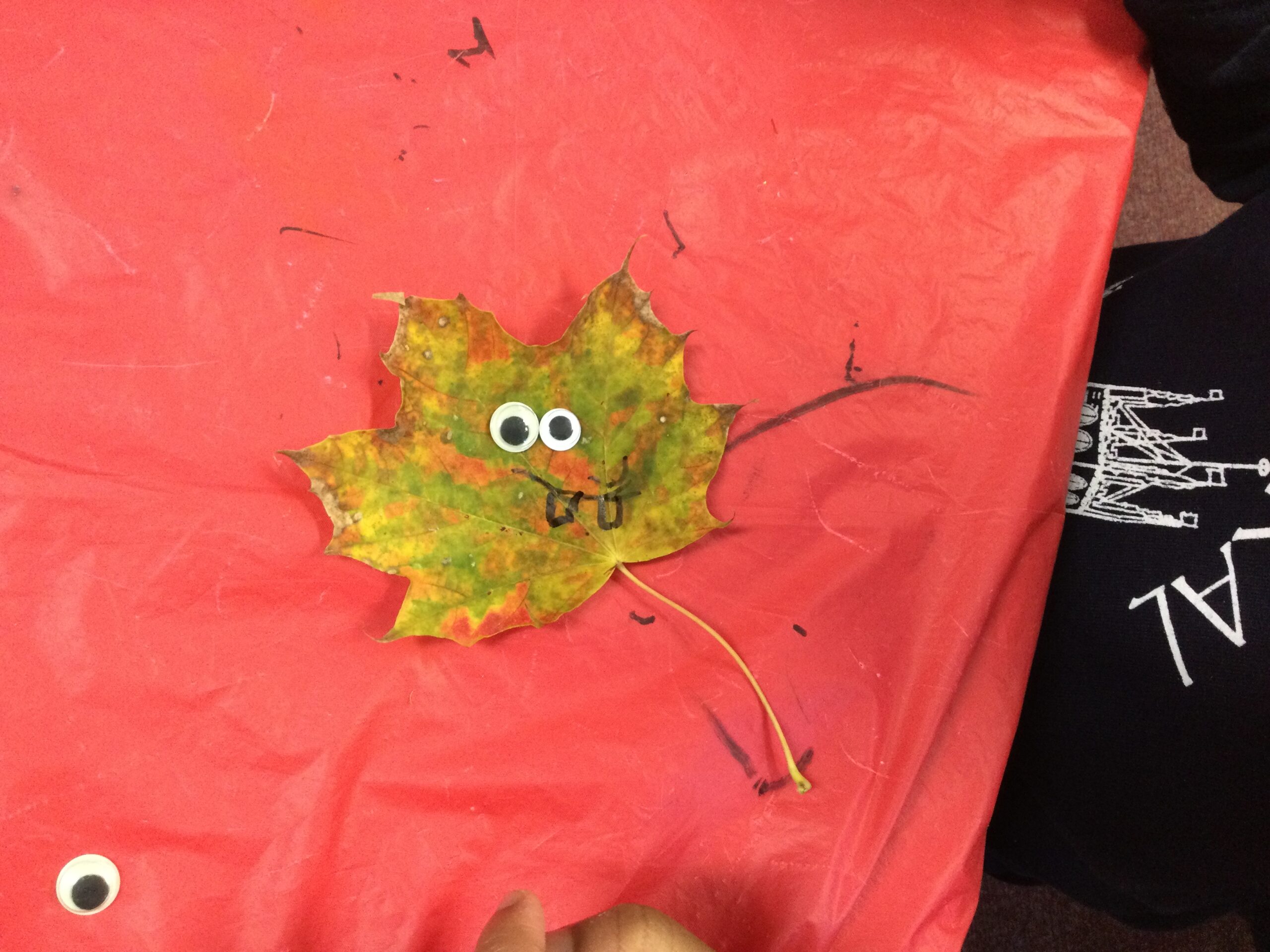 Nursery have produced some lovely pieces of Art this week. Children used autumn leaves, eyes and other materials to make some leaf pictures and were very proud of their work! Some of them even used a whiteboard pen to draw eyes and mouths onto their leaves. Well done on a great week of learning Nursery.