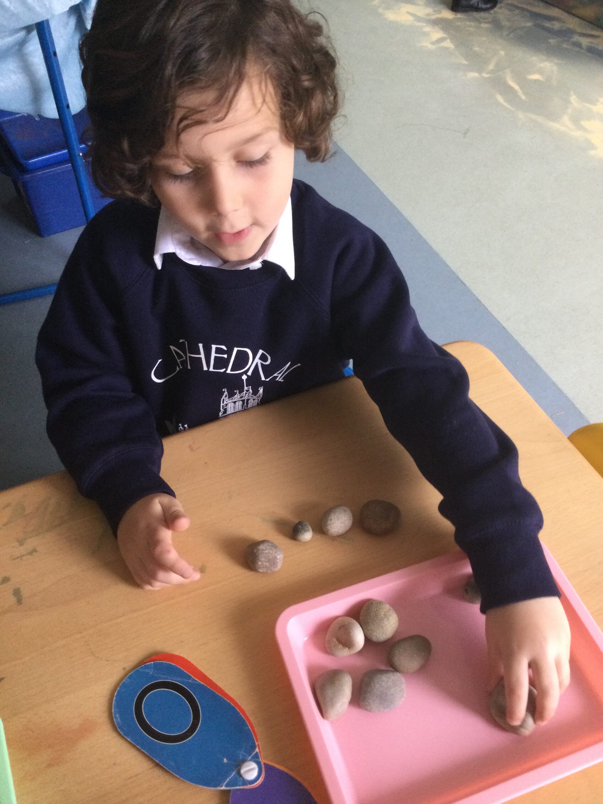 This week in Maths we have been practicing the skill of counting out a given number of objects from a larger group. We learnt that to be successful at this, we can line our objects up and make sure we point to each one only once as we go. Once we have counted the total, we then count them again to double check.