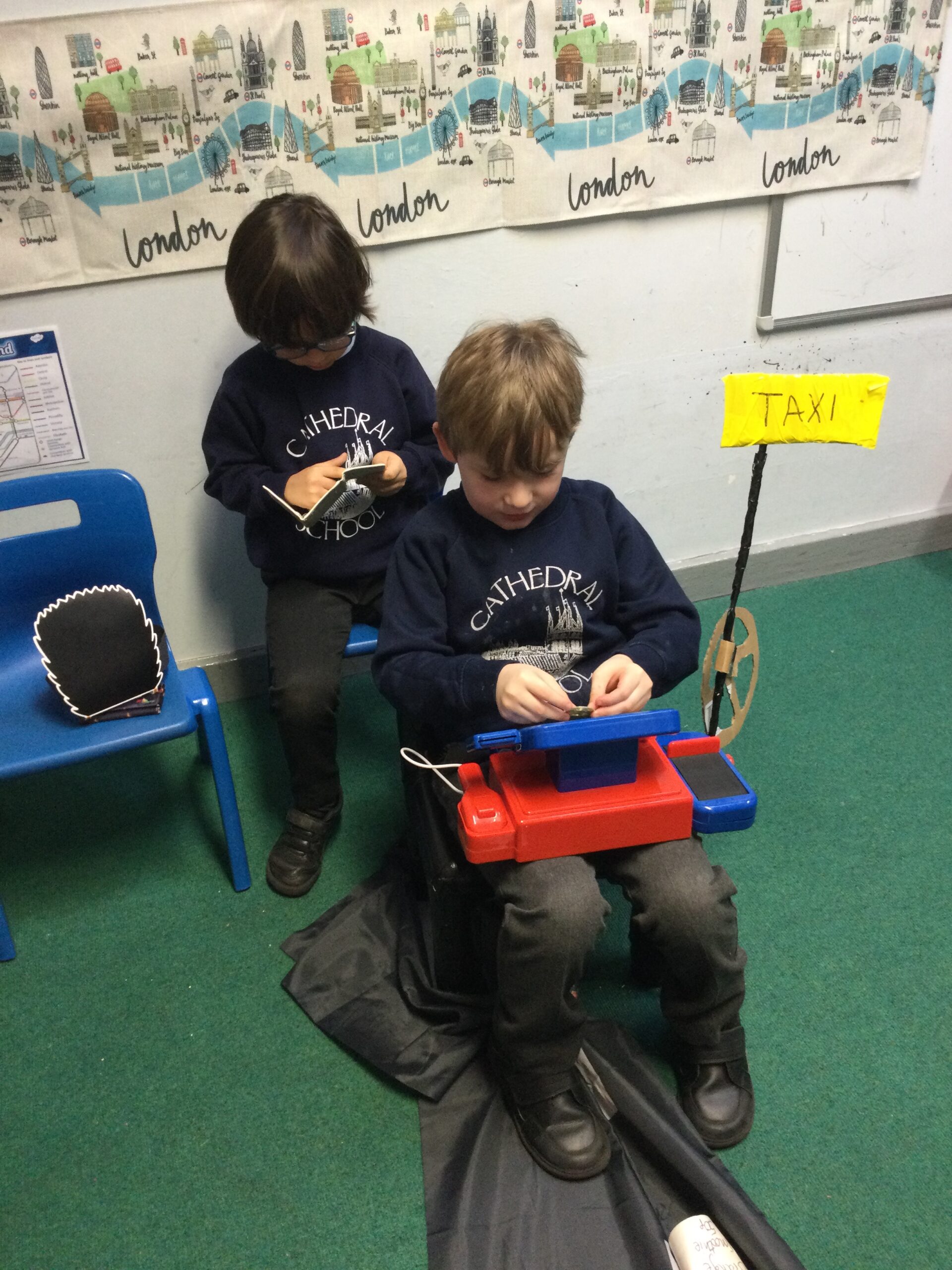 The children have enjoyed our ‘London’ role play area, engaging in lots of imaginative play – driving a taxi, riding a London bus, and visiting the sites!